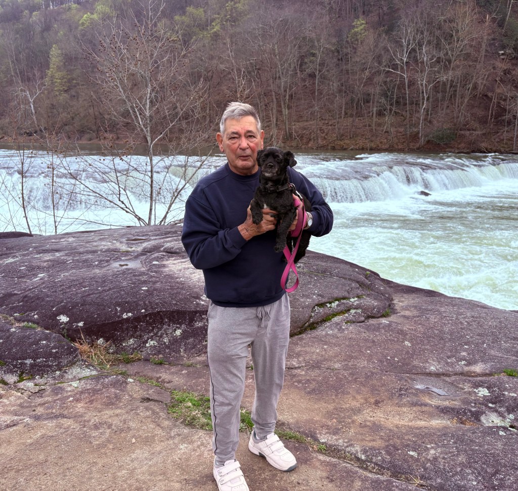 Meet my new friend, James E. “Jimmy” Coberly. Jimmy has a healthy habit of visiting Valley Falls State Park each and everyday with his dog, Jellybean. Jimmy implemented this habit more than 5 years ago before his wife, Sharon, passed away. Together they would visit Valley Falls, take in the natural beauty, and talk to friendly people visiting the state park.