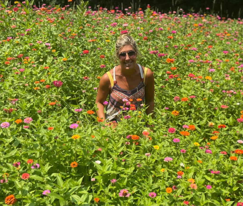 A couple years ago, my Martha Stewart friend, Katie, invited me to visit her beautiful field of zinnias. Katie’s field of zinnias is by far one of the most beautiful places that I’ve EVER visited. I revisit Katie’s zinnia field in my MIND regularly, when the reality in front of me isn’t so pleasant. I ponder back to what it looked like, smelled like, and felt like on that particular summer day.